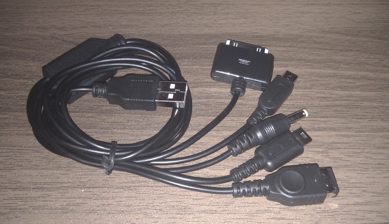 Pārdodu USB kabeli ar 5 dažādiem galiem, ar ko var no jebkura USB porta lādēt PSP, Nintendo DS, DS Lite, DSi, iPod, iPhone, kā arī jebkuru citu iekārtu, kas izmanto kādu no šiem kontaktiem un atbalsta lādēšanu no USB.