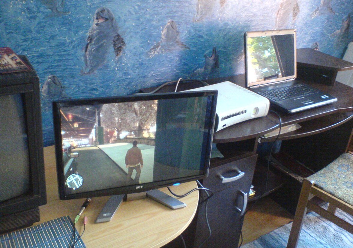 Nopirku X-Kasti un vadu priekš moņa, jo sākumā dragāju uz sava 20'' brīnuma. Pēc 2 mēnešiem tika iegādāts FullHD Samsung 40'' LCD Teļuks.
